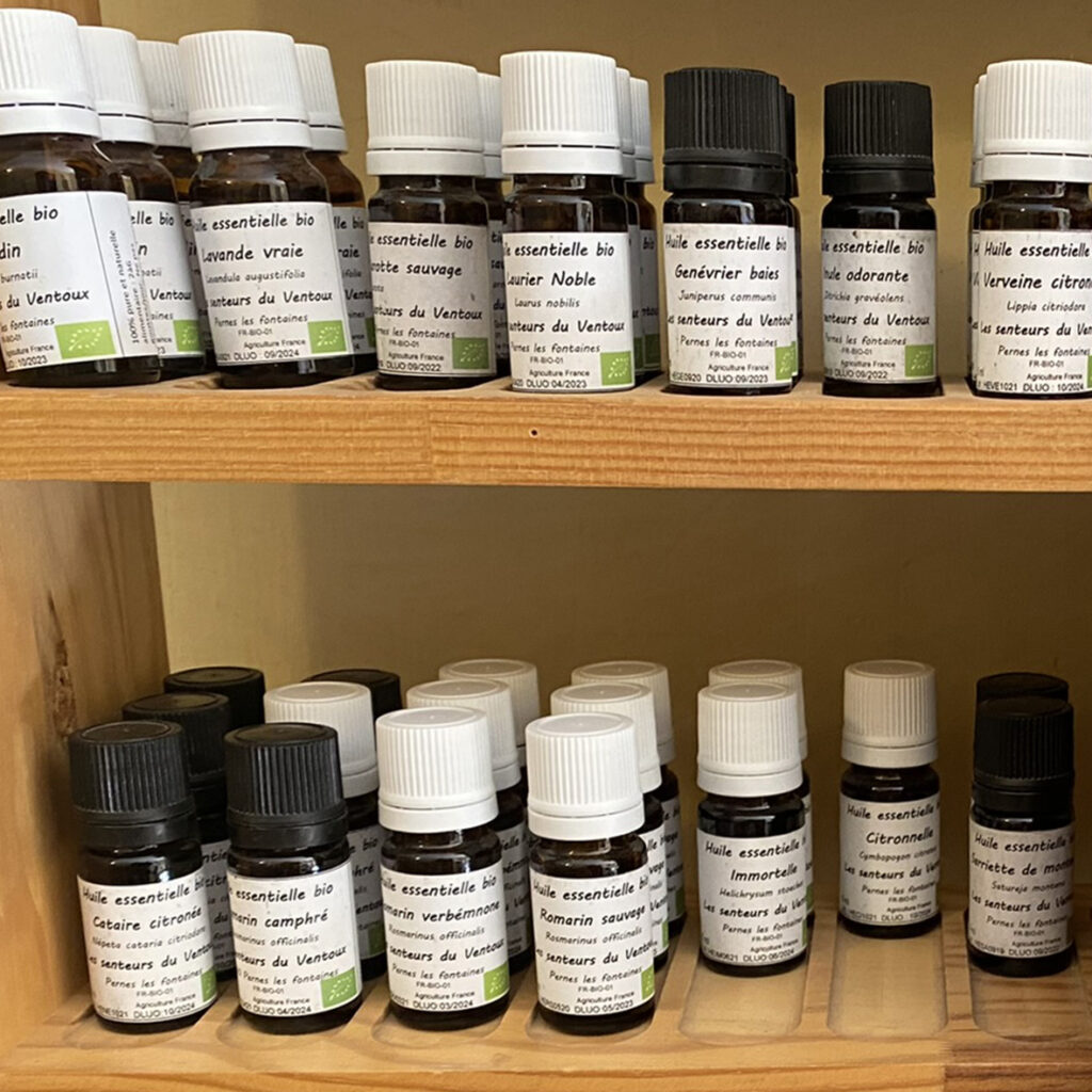 Nos huiles essentielles sont élaborées avec la récolte de nos plantes certifiées BIO, à la ferme, nous vous proposons plusieurs variétés, n’hésitez pas à me demander des conseils !